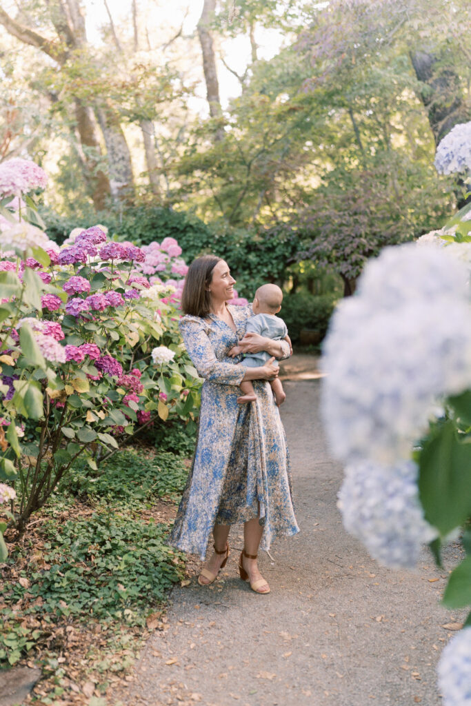 Filoli is one of my favorite Bay Area destinations for photography or even an afternoon outing. It’s gorgeous historic home and sprawling seasonal gardens create the perfect backdrop for photos year round. I love all of the winding paths and different vignettes it can create to tell your story. While it truly is beautiful year-round, summer is a favorite of mine because the hydrangeas are in full bloom and absolutely stunning so I knew it would be the perfect place to spend the late afternoon with my friend Katy and her son. Each stage of early motherhood feels so fleeting, those tiny toes and hands grow so fast, routines change and milestones fly by. It’s so important to take the time to slow down and soak it in, even if just for an afternoon, and getting a chance to document it and preserve it for you is my honor and pleasure.